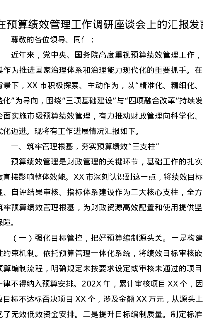 在预算绩效管理工作调研座谈会上的汇报发言