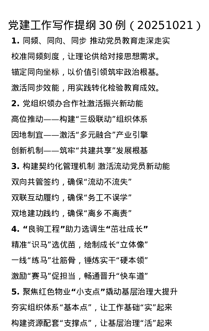 党建工作写作提纲30例(20251021)