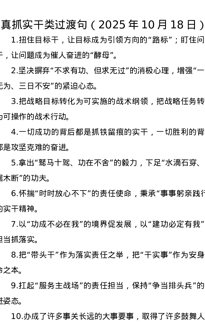 真抓实干类过渡句(2025年10月18日)