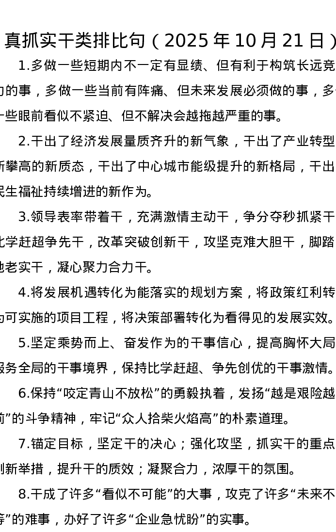 真抓实干类排比句(2025年10月21日)