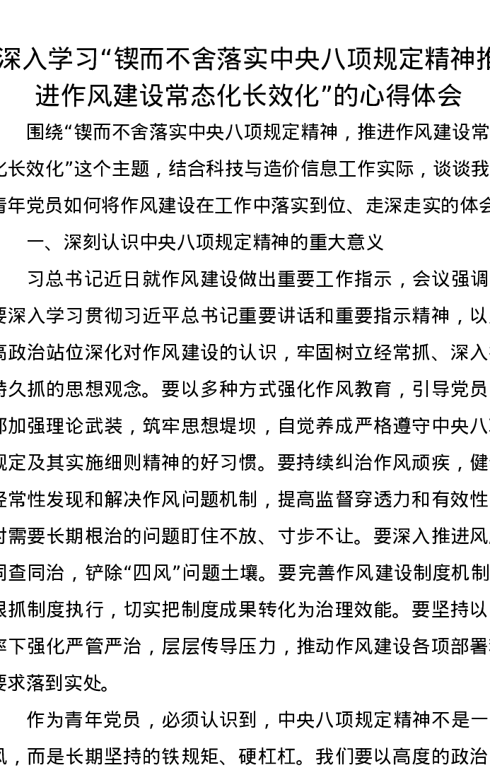 深入学习“锲而不舍落实中央八项规定精神推进作风建设常态化长效化”的心得体会