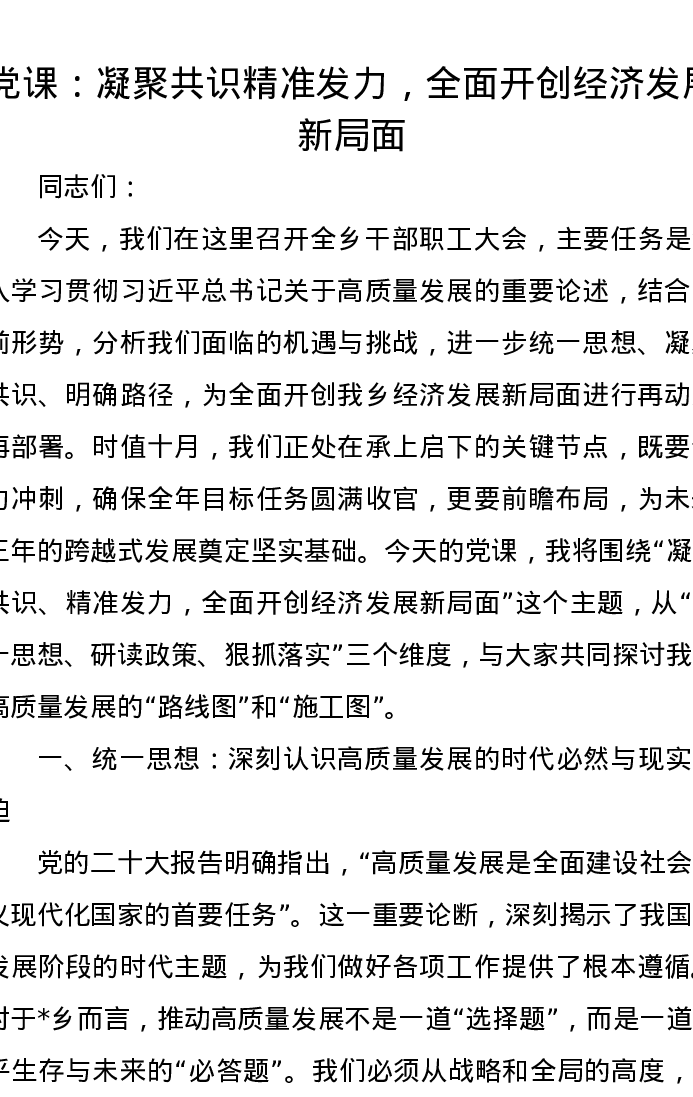 党课讲稿:凝聚共识精准发力,全面开创经济发展新局面