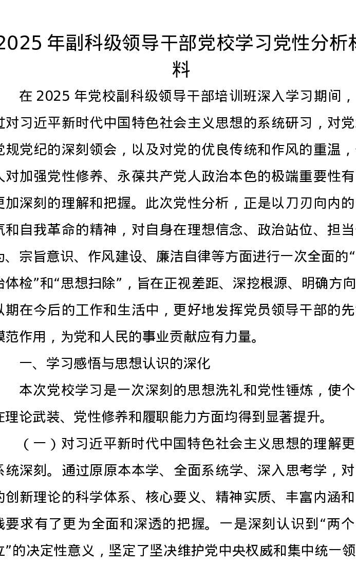2025年副科级领导干部党校学习党性分析报告材料