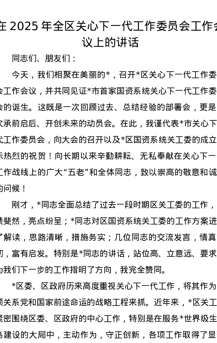 在2025年全区关心下一代工作委员会工作会议上的讲话