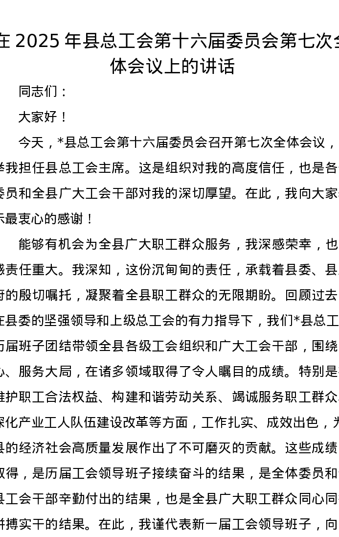 在2025年县总工会第十六届委员会第七次全体会议上的讲话