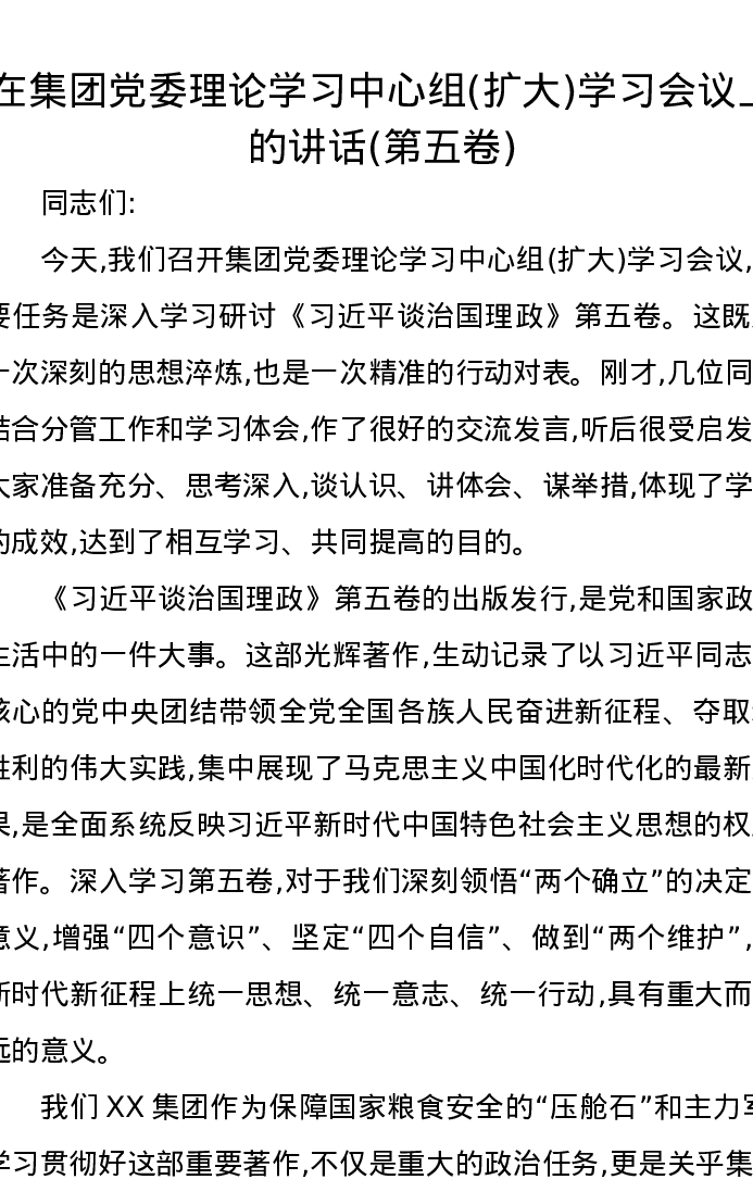 在集团党委理论学习中心组(扩大)学习会议上的讲话(第五卷)