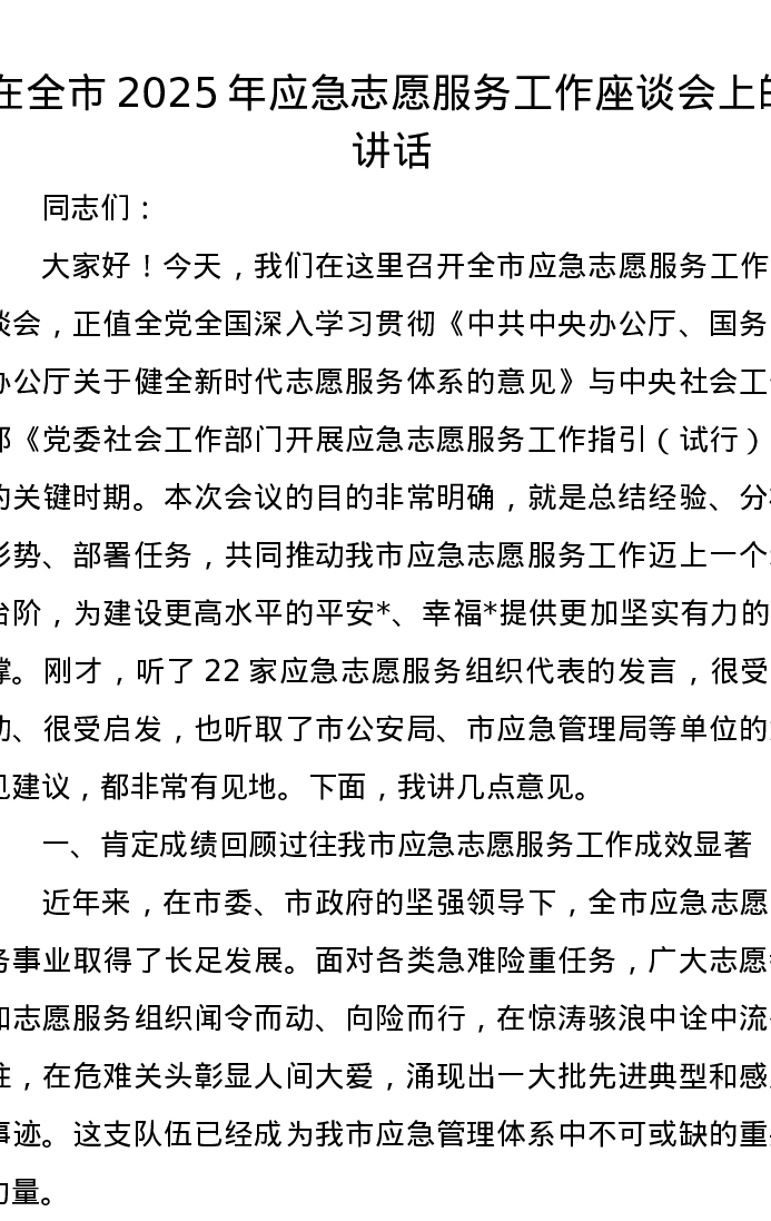 在全市2025年应急志愿服务工作座谈会上的讲话