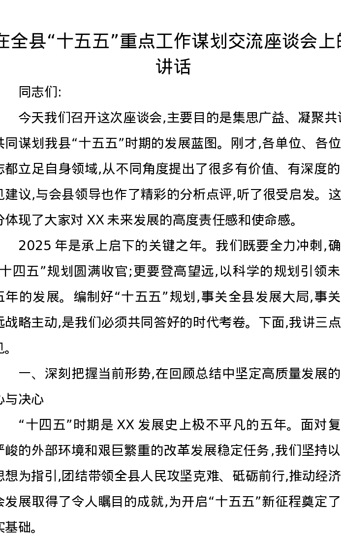 在全县“十五五”重点工作谋划交流座谈会上的讲话
