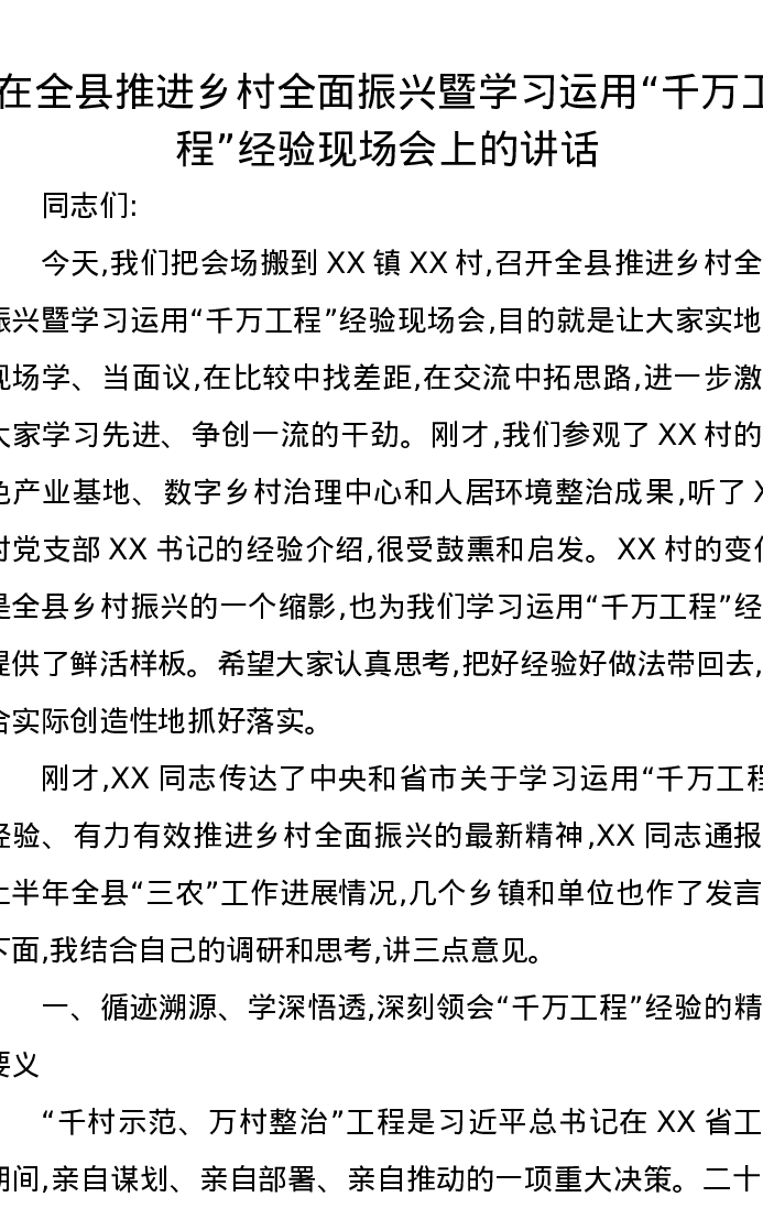 在全县推进乡村全面振兴暨学习运用“千万工程”经验现场会上的讲话