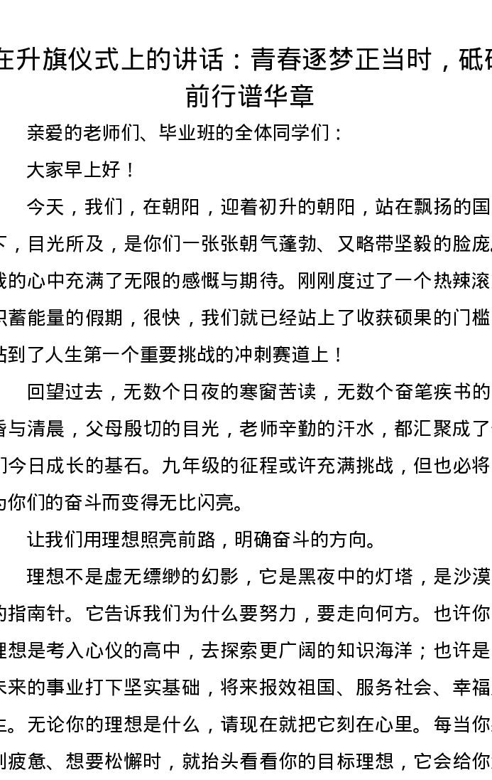 在升旗仪式上的讲话:青春逐梦正当时,砥砺前行谱华章