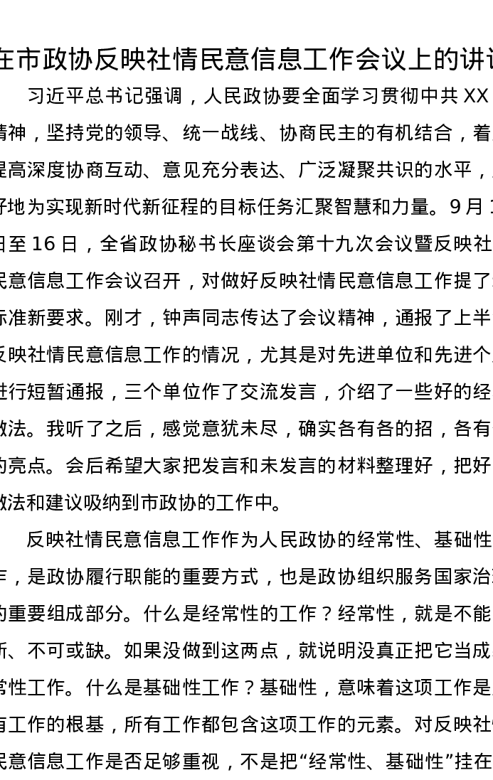 在市政协反映社情民意信息工作会议上的讲话