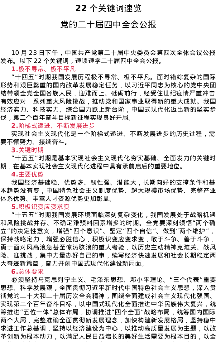 PPT:22个关键词速览党的二十届四中全会公报PPT党课课件