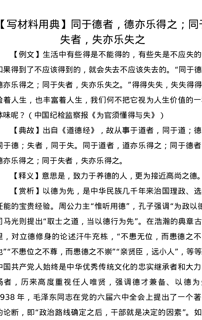 【写材料用典】同于德者,德亦乐得之; 同于失者,失亦乐失之