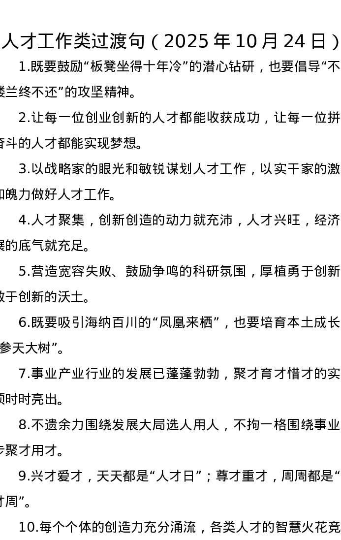 人才工作类过渡句(2025年10月24日)
