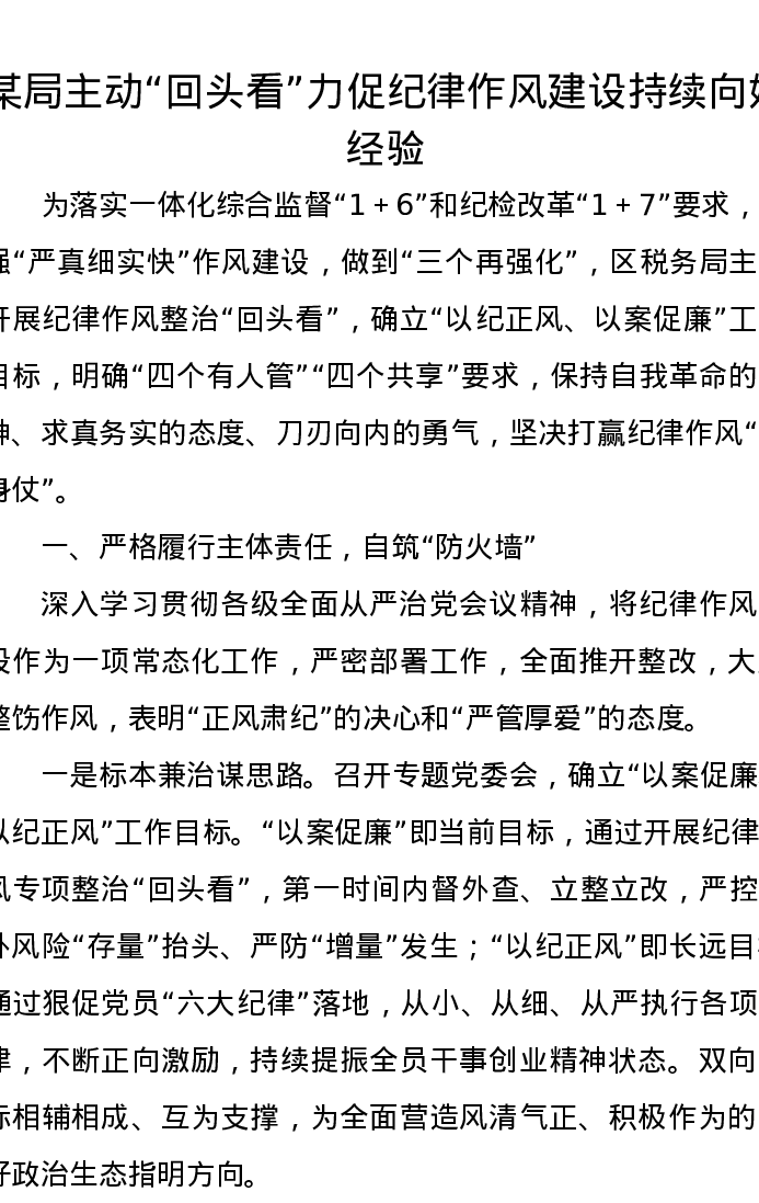 某局主动“回头看”力促纪律作风建设持续向好经验