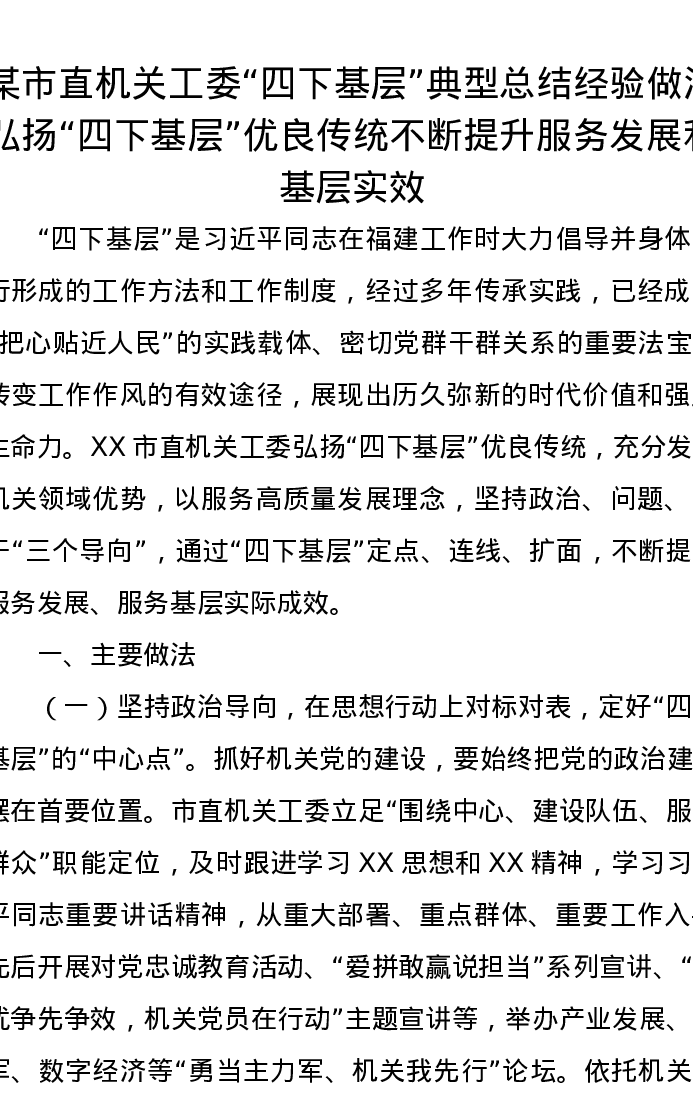 某市直机关工委“四下基层”典型总结经验做法:弘扬“四下基层”优良传统不断提升服务发展和基层实效