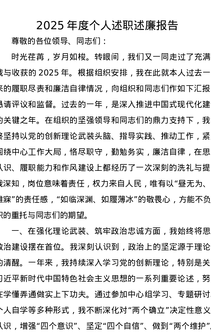 2025年度个人述职述廉报告