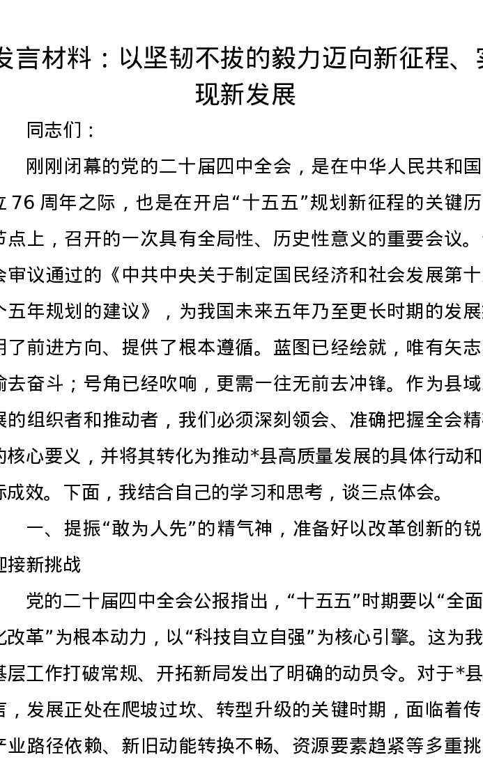 发言材料:以坚韧不拔的毅力迈向新征程、实现新发展