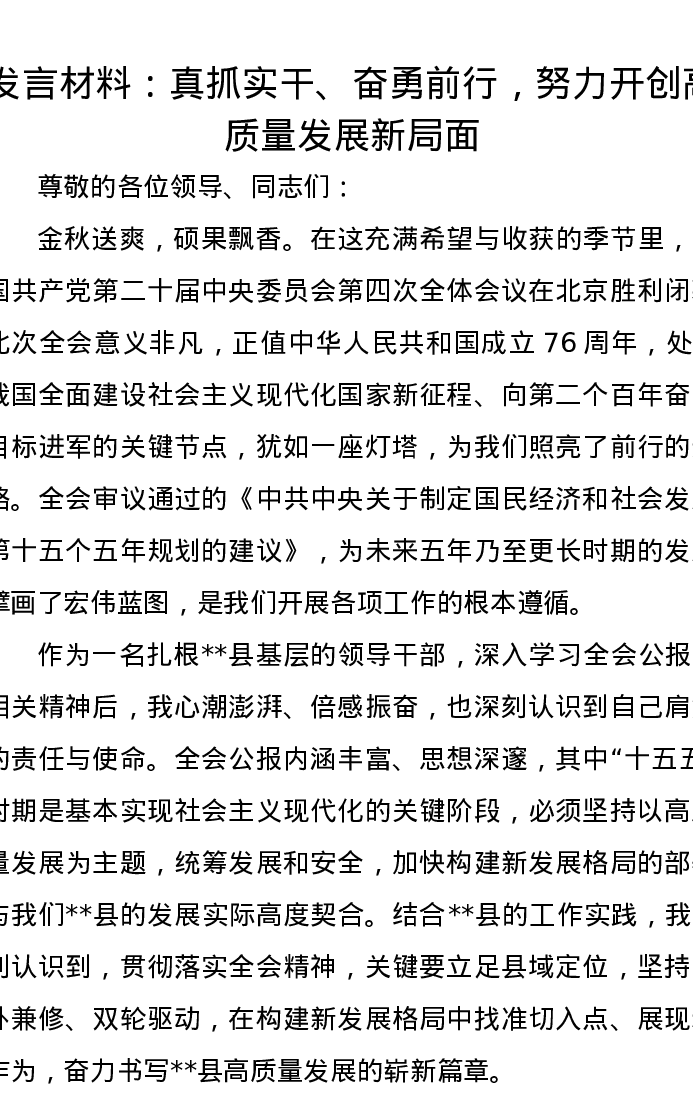 发言材料:真抓实干、奋勇前行,努力开创高质量发展新局面