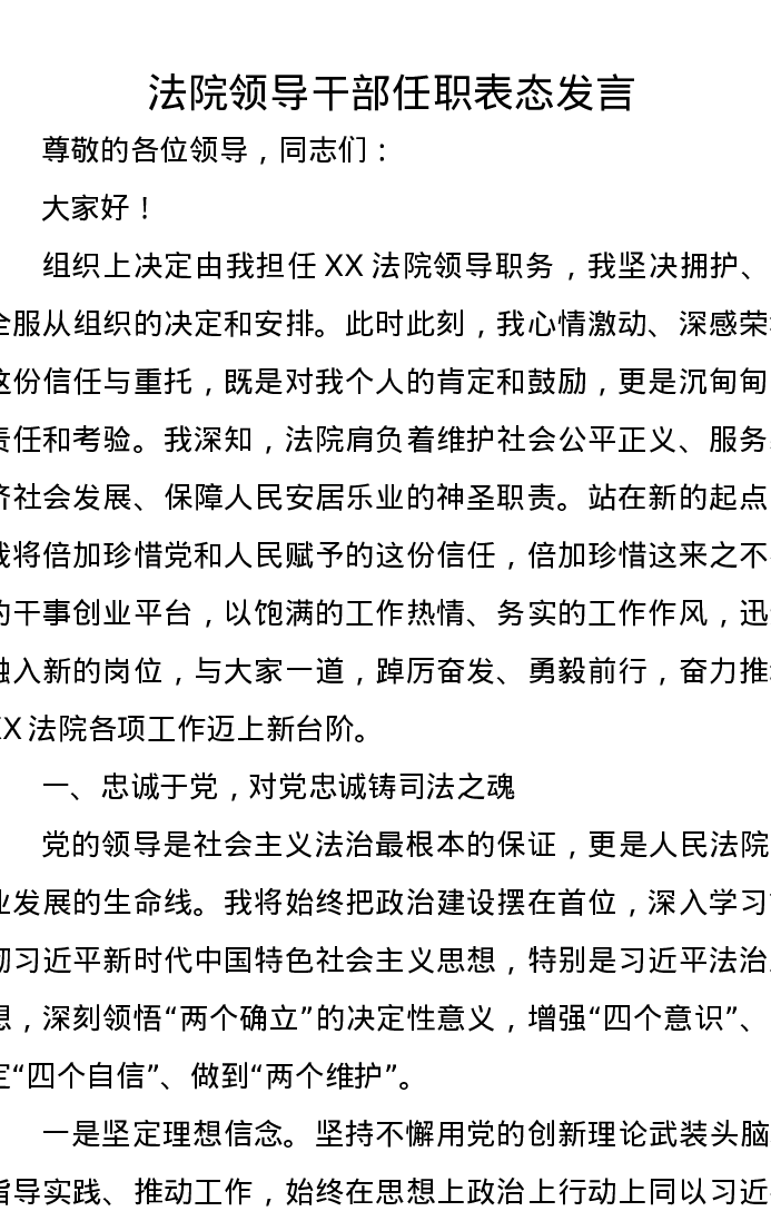 法院领导干部任职表态发言