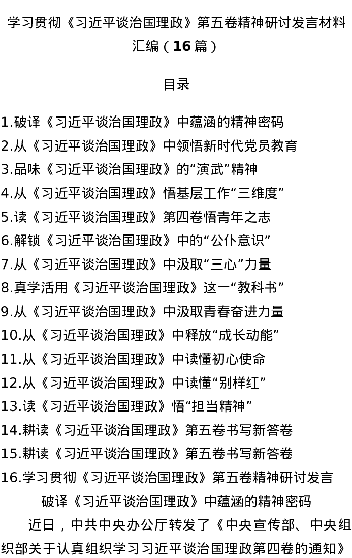 汇编:学习贯彻《总书记谈治国理政》第五卷精神研讨发言16篇
