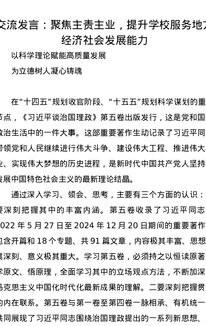 交流发言:聚焦主责主业,提升学校服务地方经济社会发展能力