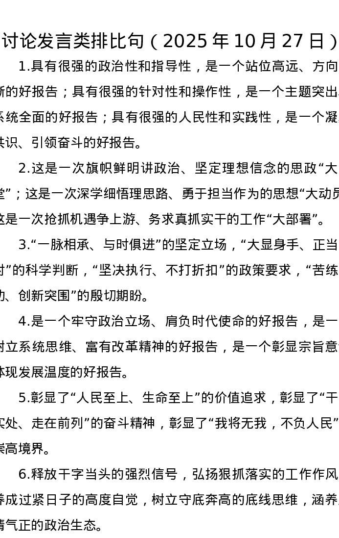 讨论发言类排比句(2025年10月27日)