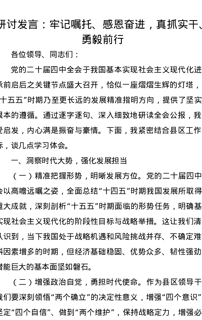 研讨发言:牢记嘱托、感恩奋进,真抓实干、勇毅前行