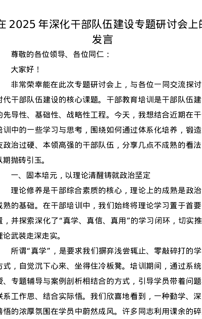 在2025年深化干部队伍建设专题研讨会上的发言