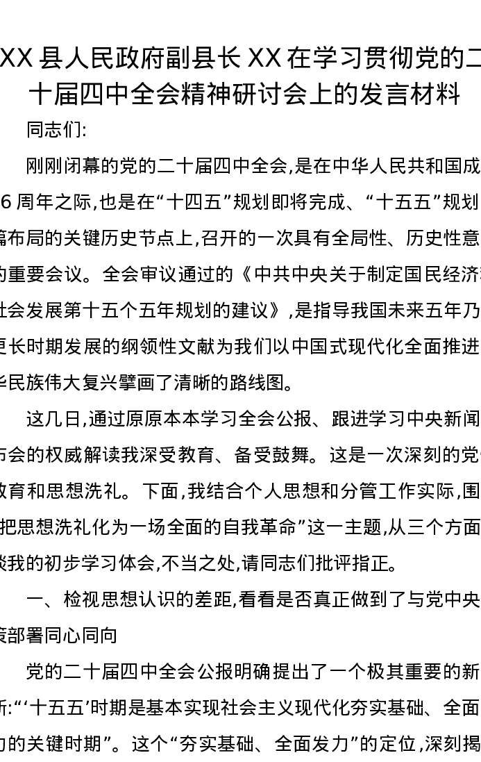 XX县人民政府副县长XX在学习贯彻党的二十届四中全会精神研讨会上的发言材料2