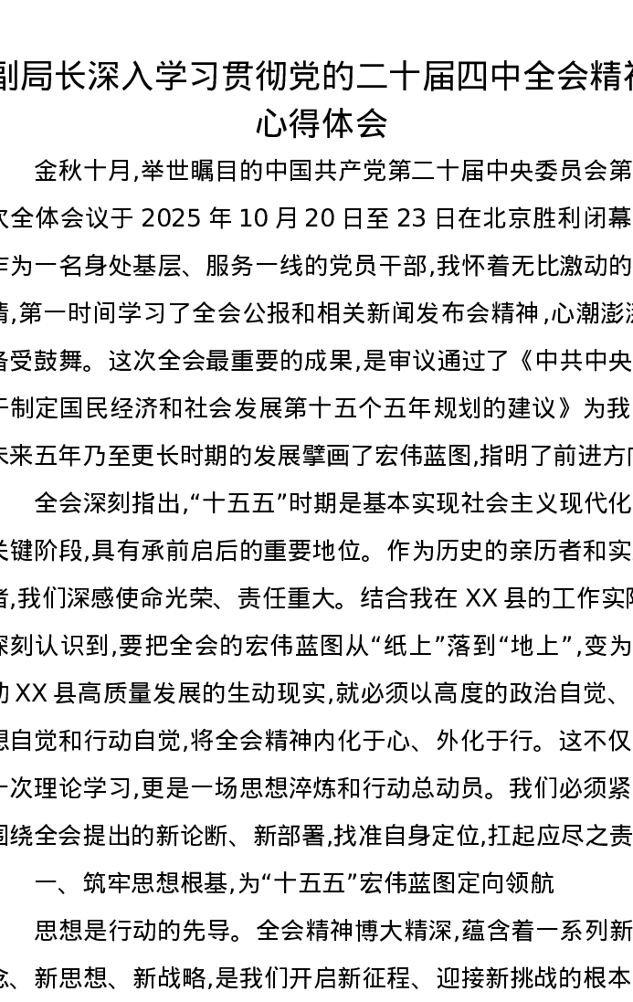副局长深入学习贯彻党的二十届四中全会精神心得体会
