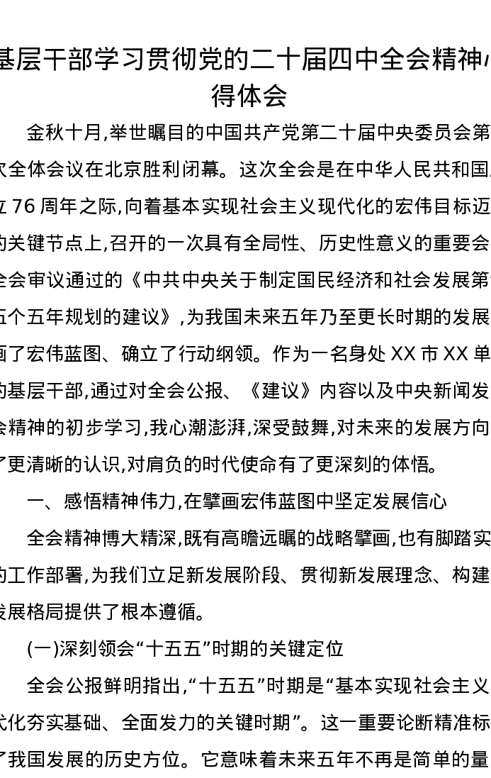 基层干部学习贯彻党的二十届四中全会精神心得体会