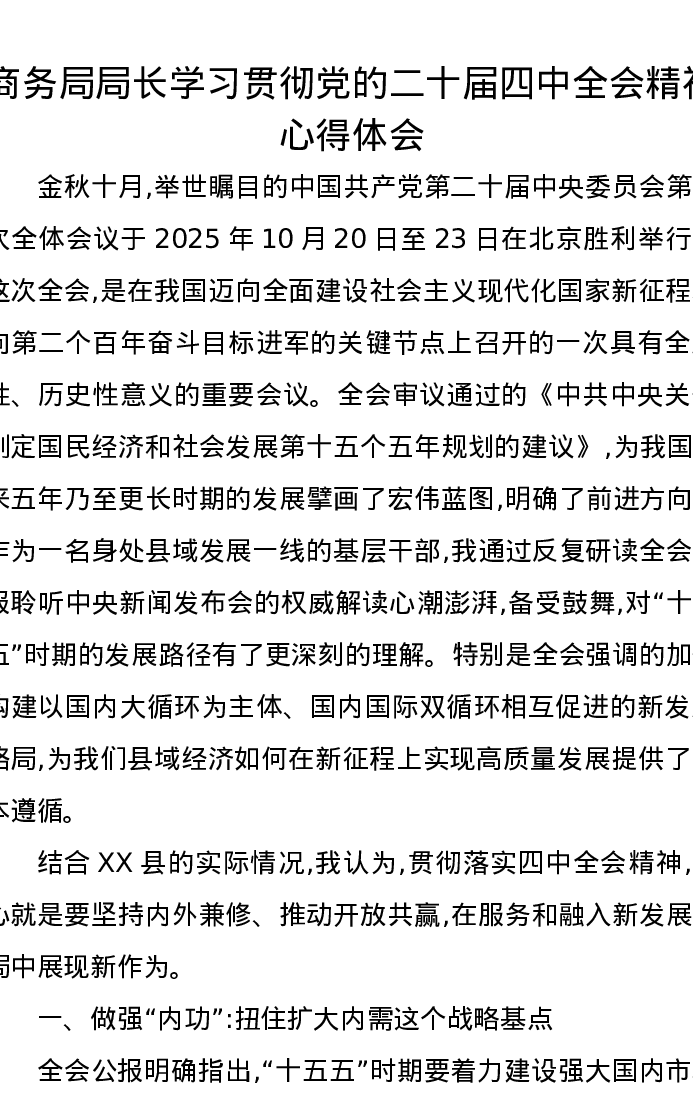 商务局局长学习贯彻党的二十届四中全会精神心得体会