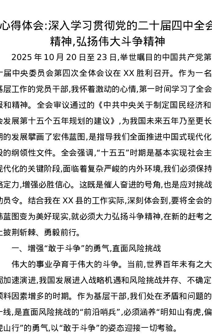 心得体会:深入学习贯彻党的二十届四中全会精神,弘扬伟大斗争精神