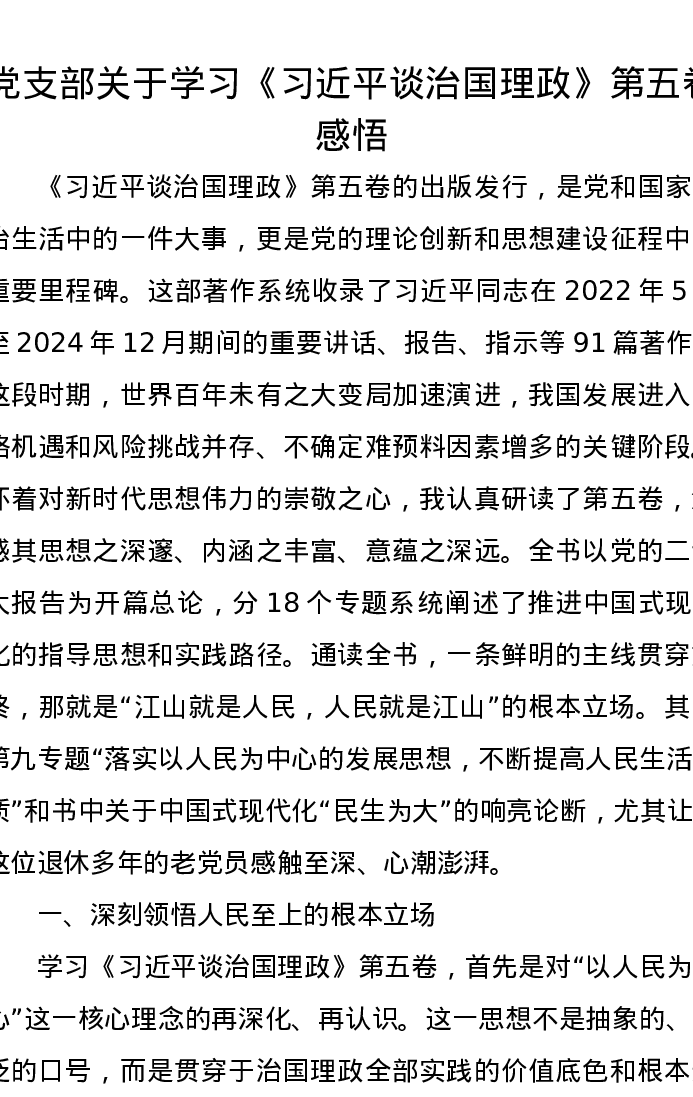 党支部关于学习《习近平谈治国理政》第五卷感悟
