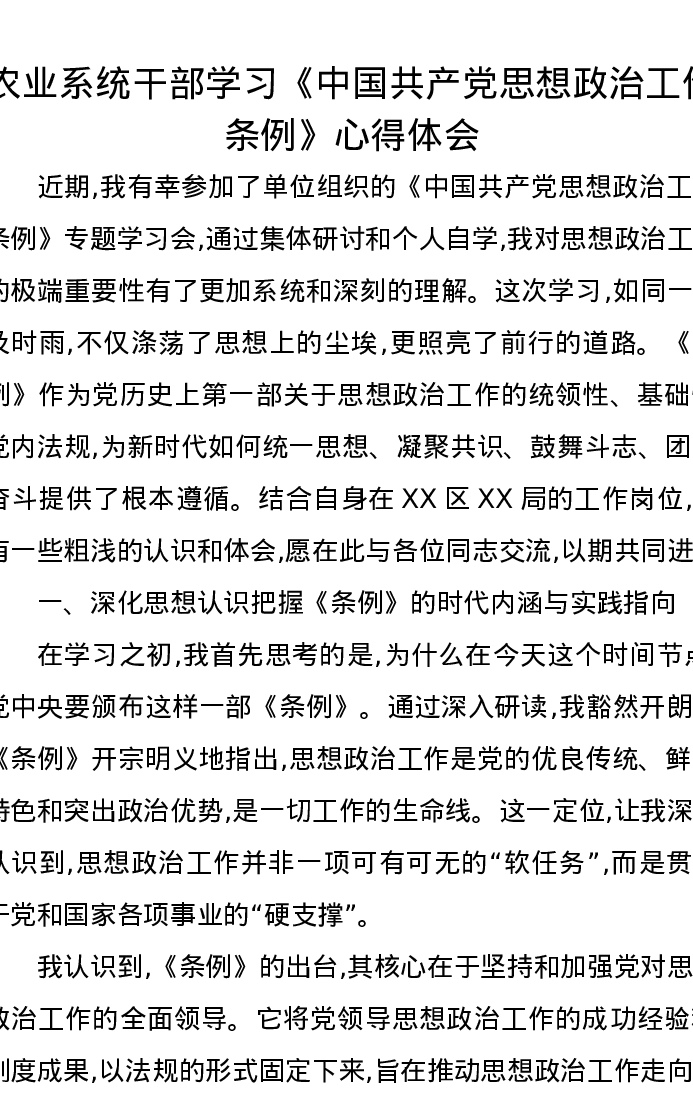 农业系统干部学习《中国共产党思想政治工作条例》心得体会