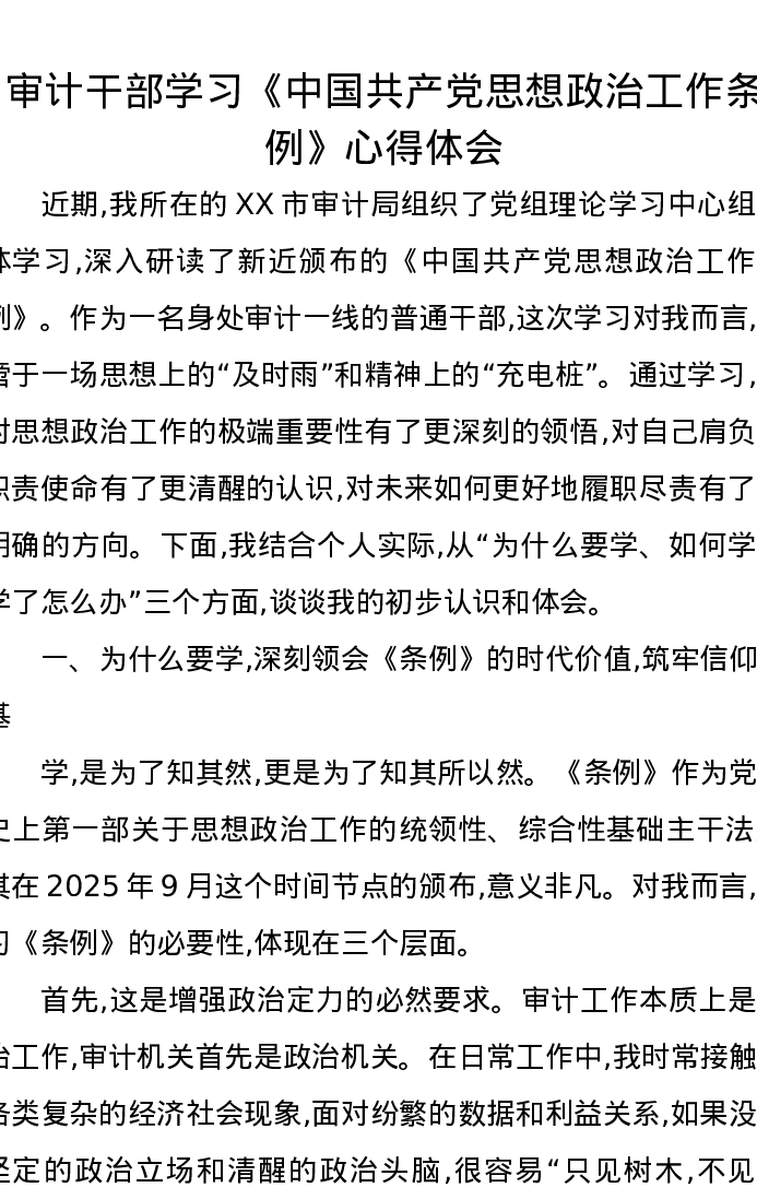 审计干部学习《中国共产党思想政治工作条例》心得体会