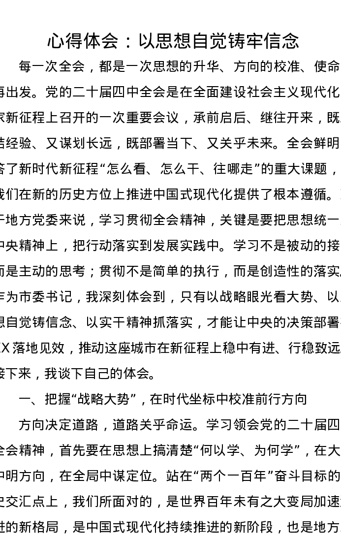 心得体会:以思想自觉铸牢信念