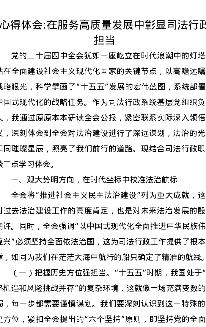 心得体会:在服务高质量发展中彰显司法行政担当