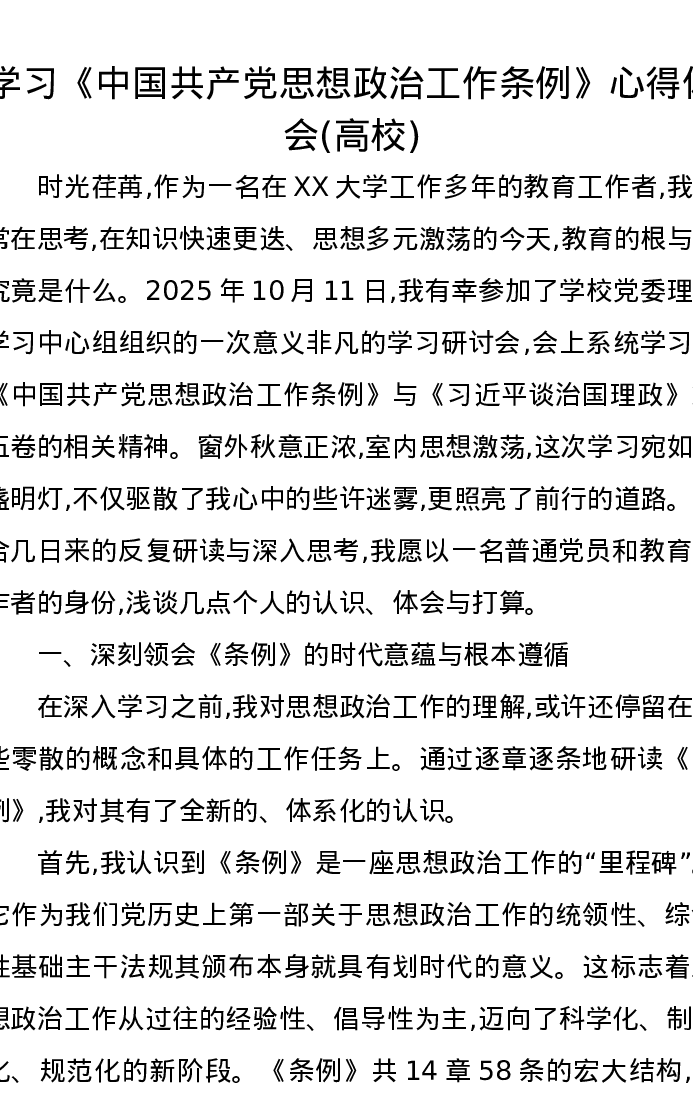 学习《中国共产党思想政治工作条例》心得体会(高校)