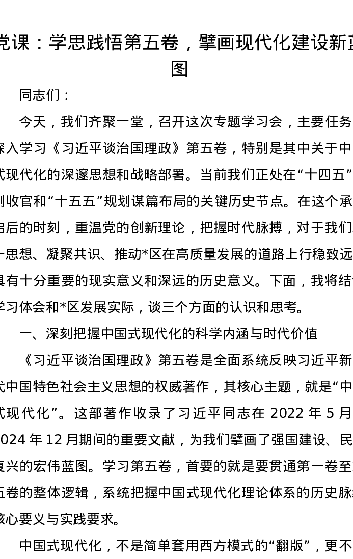 党课讲稿:学思践悟第五卷,擘画现代化建设新蓝图