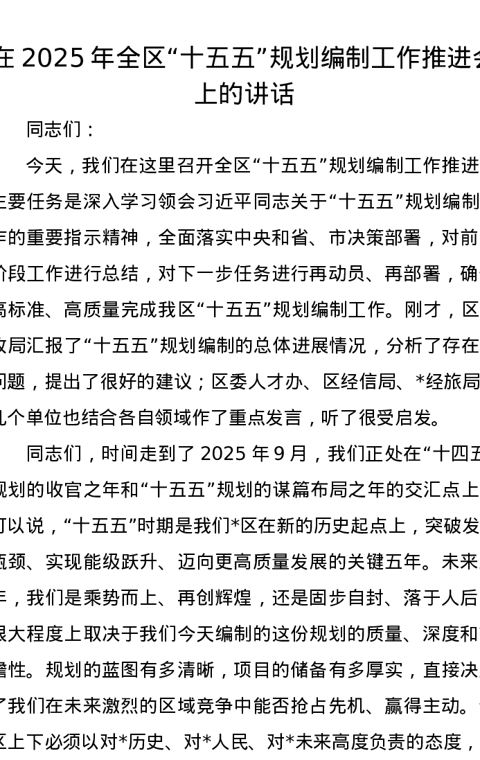 在2025年全区“十五五”规划编制工作推进会上的讲话