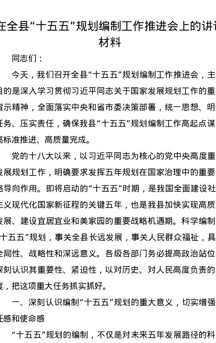 在全县“十五五”规划编制工作推进会上的讲话材料