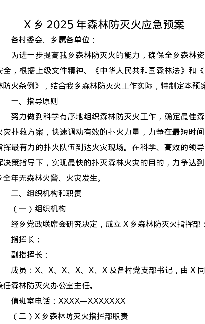 X乡2025年森林防灭火应急预案