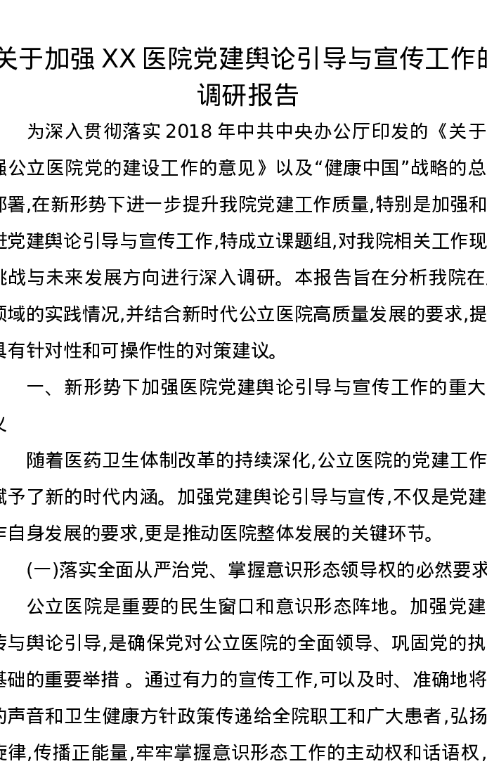 关于加强XX医院党建舆论引导与宣传工作的调研报告