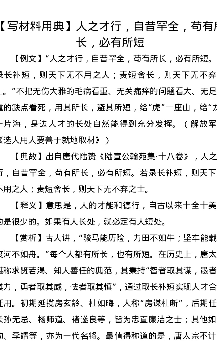【写材料用典】人之才行,自昔罕全,苟有所长,必有所短