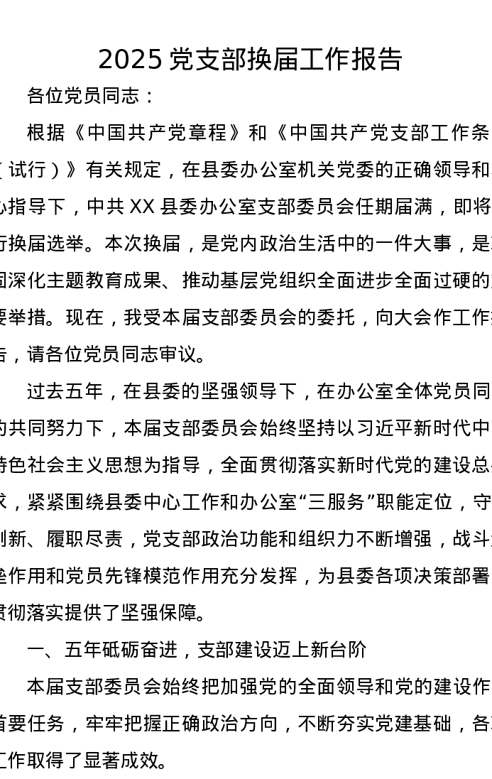 2025党支部换届工作报告