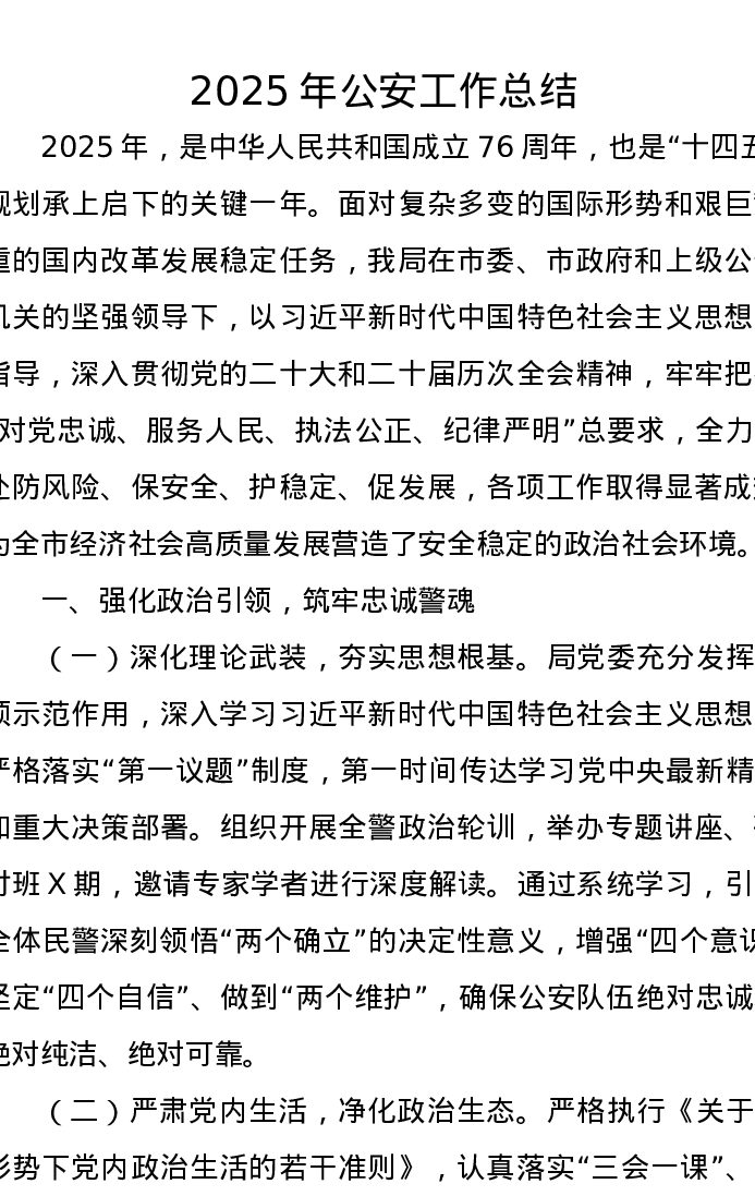 2025年公安工作总结