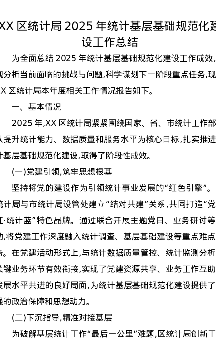 XX区统计局2025年统计基层基础规范化建设工作总结