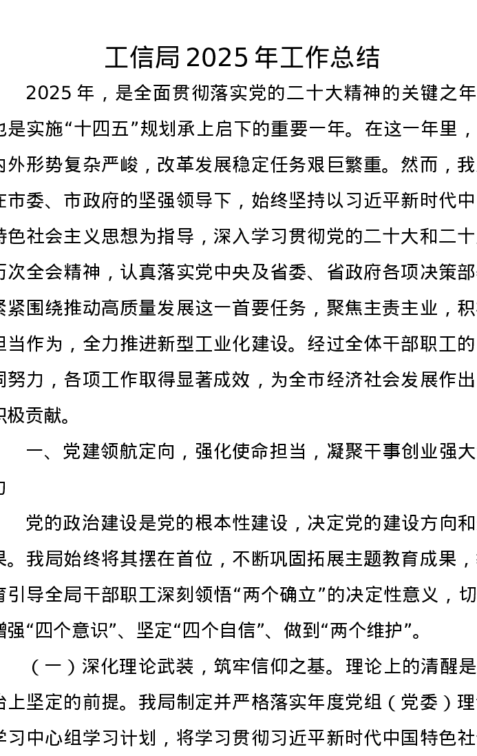 工信局2025年工作总结